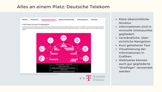 Die Deutsche Telekom setzt sich mit 23 von 28 Punkten an die Spitze und gehört neben E.ON zu den 2 Unternehmen, die die Anforderung der nächsten mit über 70% erfüllen.